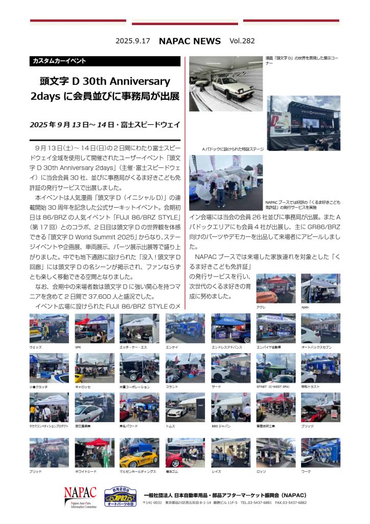 2025/09/17 Vol.282 「頭文字D 30th Anniversary 2days」に会員30社と事務局が出展