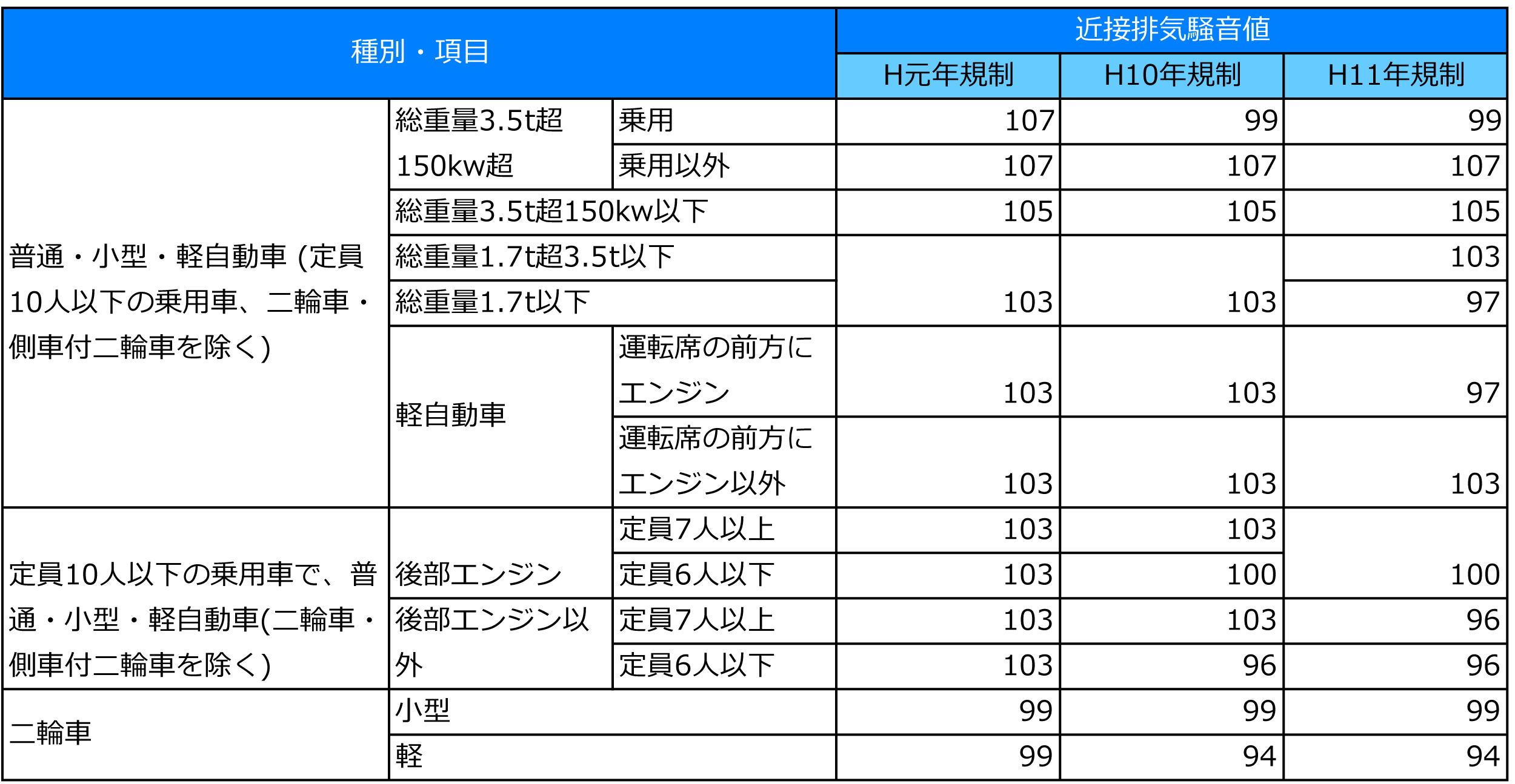 騒音に関しては、本来、排気騒音は、「近接排気騒音」「加速走行騒音」「定常走行騒音」の3種類が定められていますが、通常、継続検査時は「近接排気騒音」しか計りません。